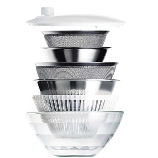 全てをボウル1個分のスペースに重ねてすっきり収納できるのも画期的な特長です。