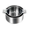 ステンレス でアルミニウムを挟んだ3層底の効果で、料理を美味しくスピーディに仕上げます。★底はL同様の3層構造ですが、コーナー部分の構造が異なります。 深鍋は全て専用のふた付き。鍋の中の蒸気の循環を促すように設計されたふたなので、調理の効率アップに役立ちます。