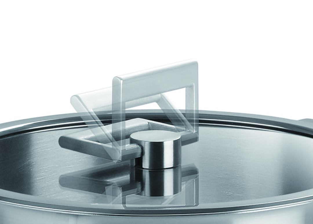 クリステルL専用の強化ガラス+ステンレス製のふた(つまみ付き)。
