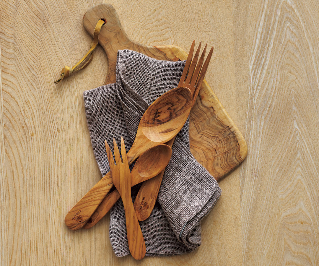 オリーブの木は、他の木材と比較して非常に気密性が高く硬いため、とても丈夫で刃物などのキズが残りにくく、匂いや汚れがつきにくい特徴です。