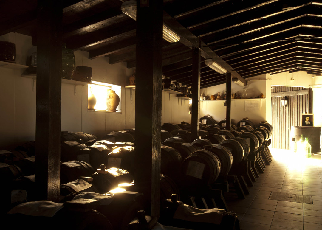収穫はぶどうの甘みが最も増す9月末から10月に行い、その搾汁(モスト)を長時間かけて弱火でじっくりと煮詰め、木樽に仕込みます。夏は暑く、冬は極寒と、温度差の大きい屋根裏で、1年ごとに樽を変えながら年月をかけてじっくりと熟成させます。